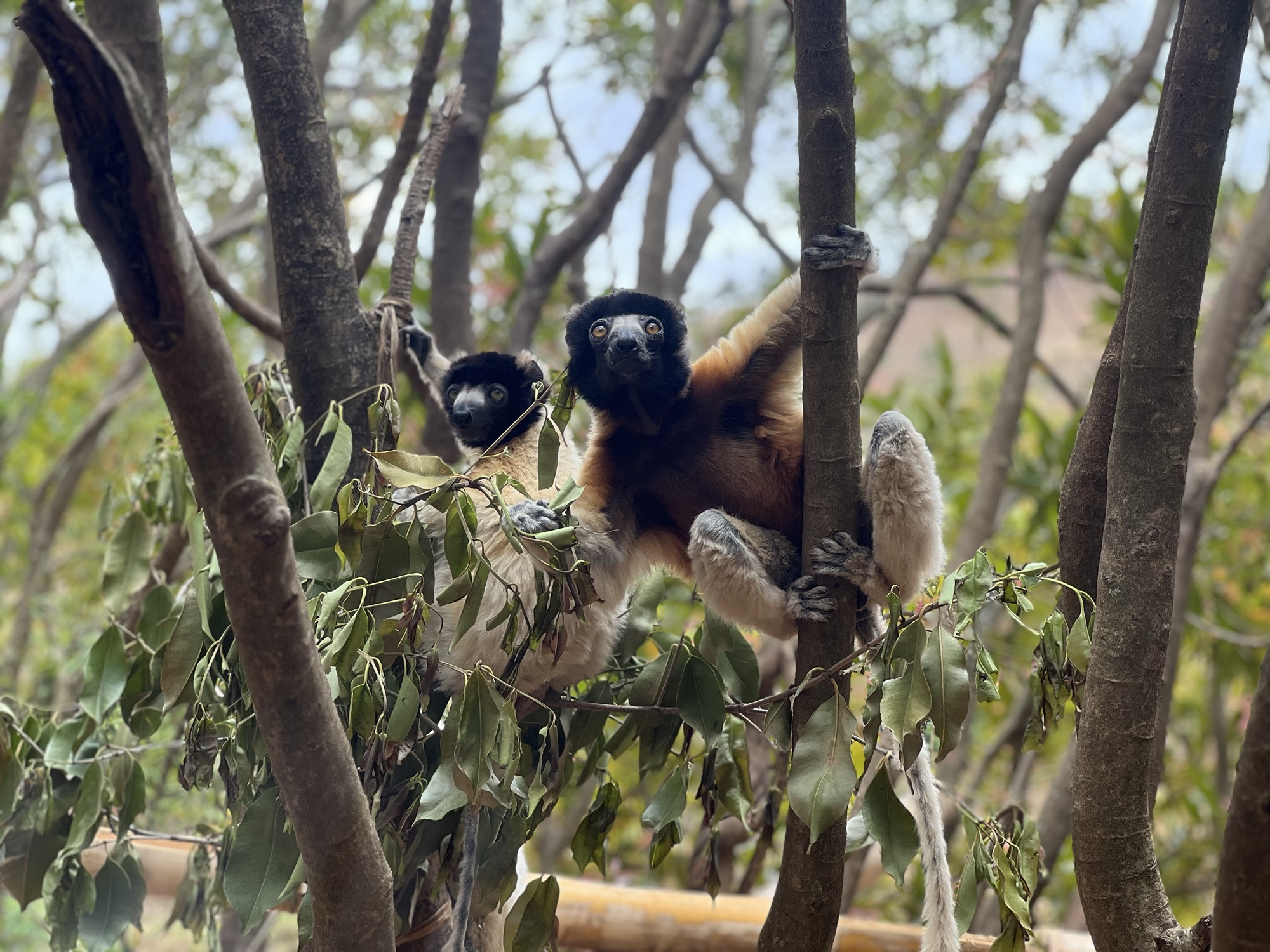 固有種のアオキツネザルはとても軽やかに動き回り、かわいい!園内に放し飼いされた猿達は人を恐れずかなり近くまで寄ってくる。